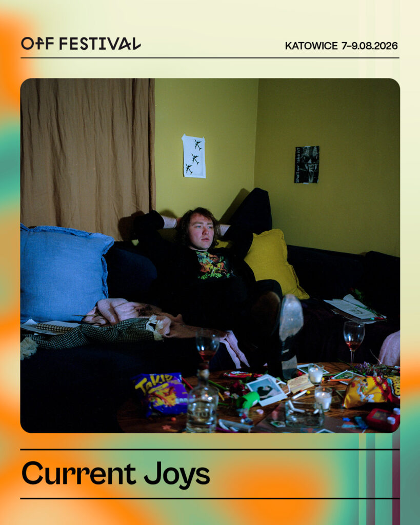 Słyszysz: „I don’t wanna f*ck, I just wanna vibe”, co robisz? Biegniesz na koncert Current Joys na OFF-ie. Najprawdopodobniej właśnie tam znajdziesz ukojenie od wszelkich lęków i depresji, czego życzy każdemu podczas słuchania jego muzyki Nick Rattigan. Założyciel, wokalista i perkusista zespołu Surf Curse, od 2015 roku prowadzący solowy projekt Current Joys. Mówią o nim amerykański pieśniarz i choć najwięcej na jego płytach wpływów country i indie rocka, muzyki, która przywołuje obrazy malowniczych Stanów i zachodów słońca nad oceanem, to nie sposób zamknąć go w jednej szufladzie. Płytą „LOVE + POP” udowodnił, że granie tylko w jednym gatunku jest męczące. Neonowa zieleń, szaleństwo i hip-hop – tak ją podsumował, przyznając, że inspirował się m.in. twórczością 100 gecs, Lil Peepa czy Drain Gang. Albo słuchał Deftones. Co jest tylko małym wycinkiem jego muzyczno-filmowych fascynacji. Na co dzień uwielbia jeszcze nostalgię lat 80., filmy Larsa von Triera i Terrence’a Malicka. I to słychać, choć może bardziej widać, gdy tylko przy muzyce Current Joys spróbujesz zamknąć oczy.