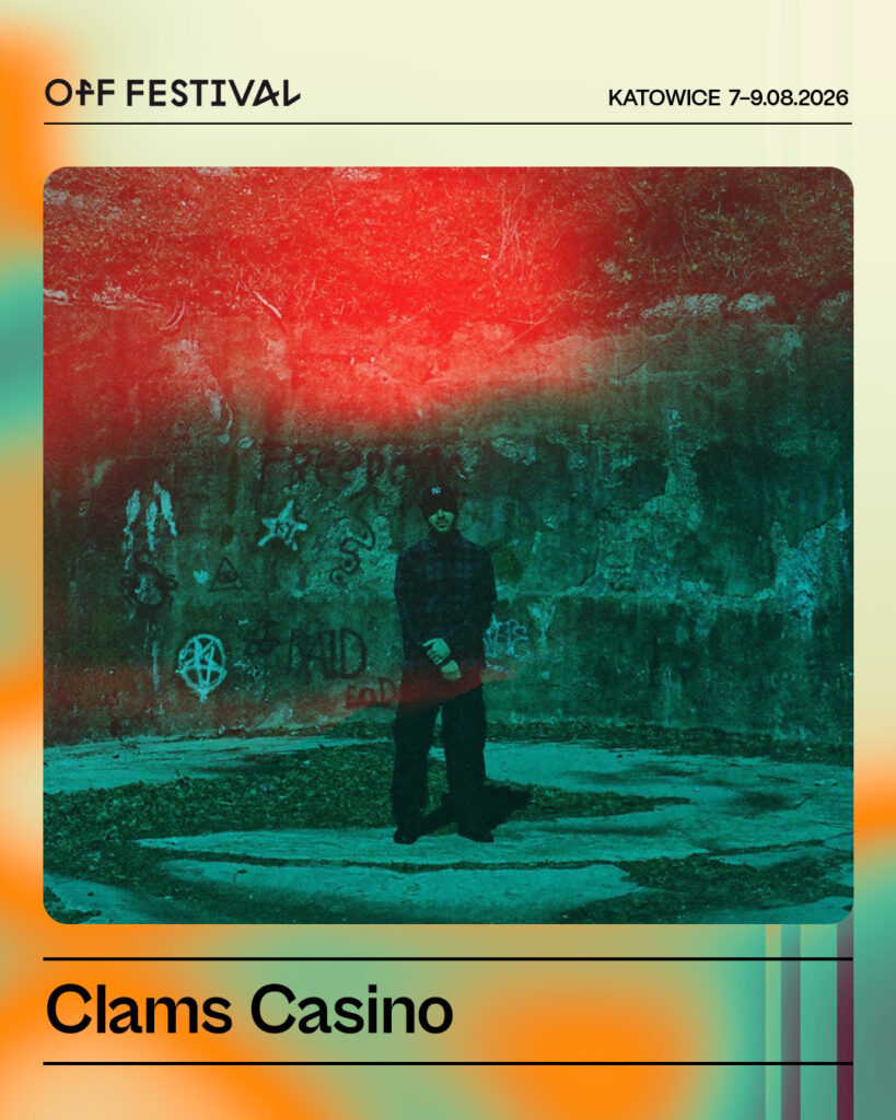Producent i pionier cloud rapu, sam wolący o swojej muzyce myśleć jako ambient lub new age hip-hopie. Bez jego wyobraźni i bitów nie byłoby wielu klasycznych utworów Lil B, Maca Millera, A$ap Rocky’ego czy Lil Peepa. A także kolejnego pokolenia twórców, inspirujących się przestrzennymi, bardzo klimatycznymi produkcjami Clams Casino. Jego mixtape „Instrumentals” z 2011 roku trafił na listę najlepszych albumów dekady Pitchforka, a magazyn „FACT” uznał go za jeden z najlepszych instrumentalnych mixtape’ów, jakie pojawiły się po słynnym „Donuts” J Dilli.  „Jestem pod wrażeniem jego wrażliwości”, mówi o Clams Casino inny świetny producent, Jacques Greene. Który obok Flume, FKA twigs czy Lee Scratch Perry’ego też miał przyjemność przeciąć się z nim i czerpać z jego bogatego, muzycznego świata. Ty nie przegap swojej szansy na OFF-ie.