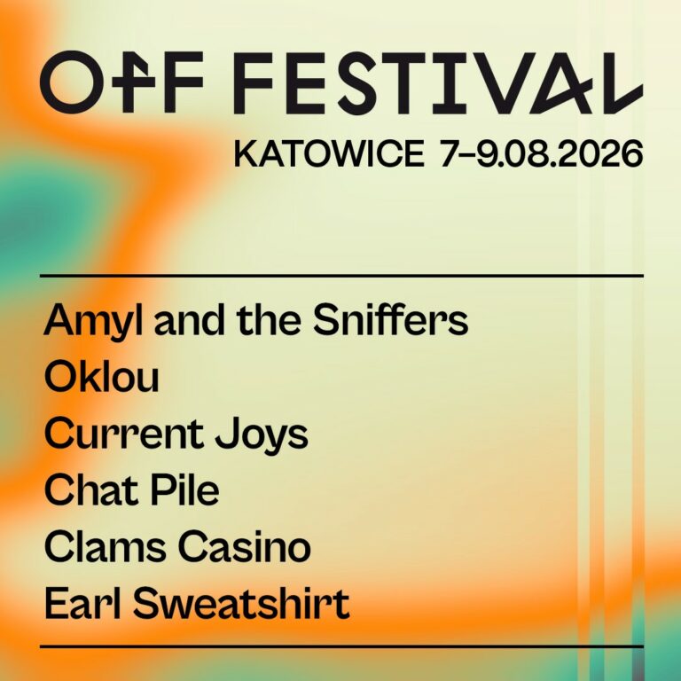 Off Festival Ogłasza pierwsze duże nazwiska, które 7-9 sierpnia 2026 r. zagrają na 19. edycji. Obok Amyl and the Sniffers nastaw się na ekscytujące koncerty Oklou, Earla Sweatshirta, Clams Casino, Current Joys i Chat Pile. Nowa pula biletów jest już w sprzedaży.