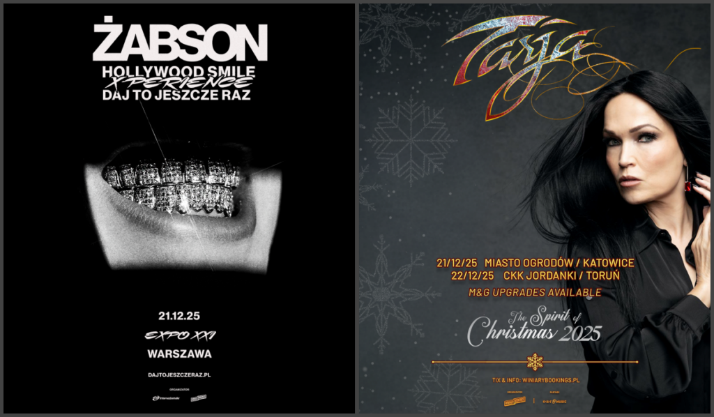 W najbliższych dniach Winiary Bookings zaprasza na dwa wyjątkowe koncerty, które pokazują pełne spektrum muzycznych emocji. Żabson dostarczy potężnej dawki energii, nowoczesnych brzmień i bezkompromisowego rapu, zamieniając koncert w dynamiczne widowisko. Z kolei Tarja Turunen, ikona symfonicznego rocka, tym razem oczaruje publiczność swoim niezwykłym głosem… w świątecznym repertuarze. Dwa różne światy, jeden organizator i niezapomniane muzyczne przeżycia.