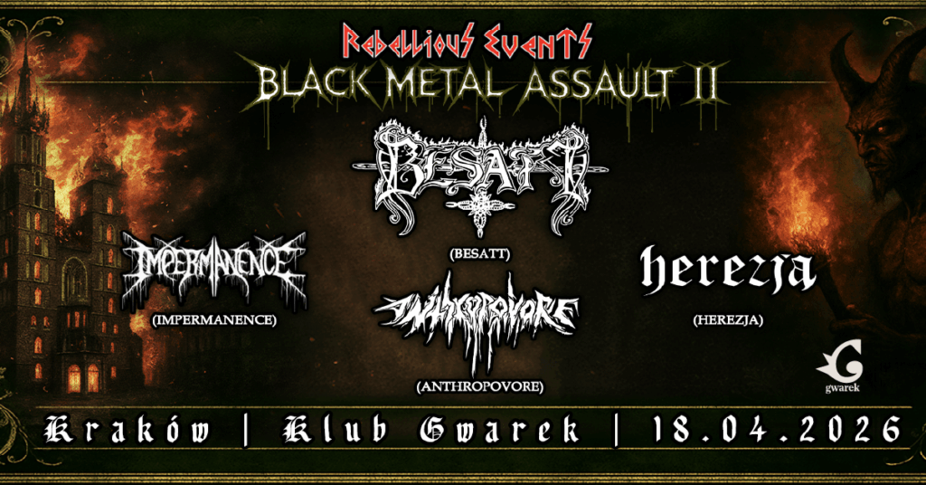 𝗞𝗼𝗻𝗰𝗲𝗿𝘁𝘆 𝗽𝗼𝗱 𝘀𝘇𝘆𝗹𝗱𝗲𝗺 𝗕𝗹𝗮𝗰𝗸 𝗠𝗲𝘁𝗮𝗹 𝗔𝘀𝘀𝗮𝘂𝗹𝘁 to podwójne uderzenie polskiej sceny blackmetalowej na Kraków!