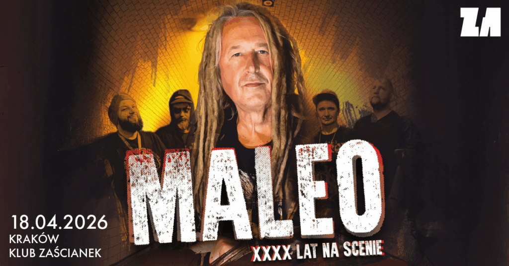 Bilety do kupienia na stronie: https://www.klubzascianek.pl/koncert/RYkQOB/2026-04-18/Maleo-XXXX-lat-na-scenie
