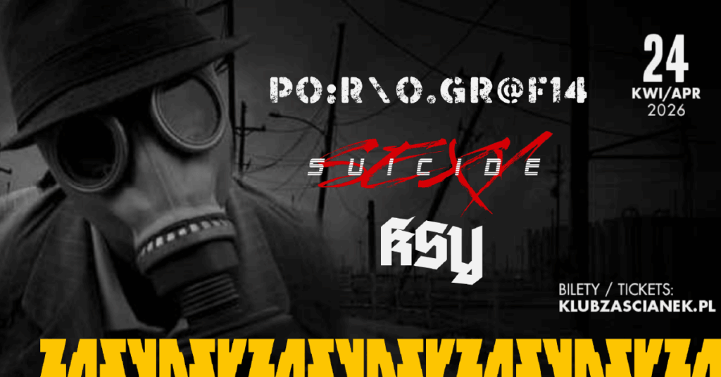Bilety do kupienia na stronie: https://www.klubzascianek.pl/koncert/R7M73B/2026-04-24/Pornogr-fia-KSY-Sexy-Suicide