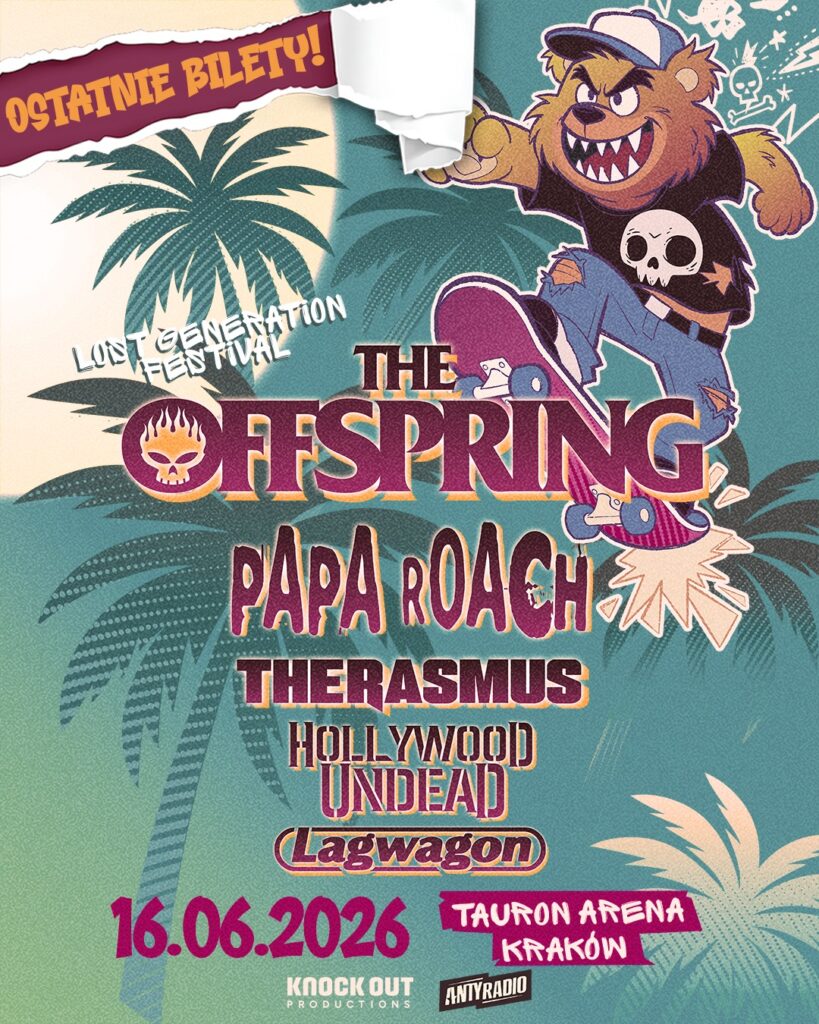 Każdy, kto widział The Offspring na żywo w ciągu ostatnich kilku lat, wie, że zespół jest w doskonałej formie, a ich muzyka wciąż potrafi skopać dupę równie mocno jak kiedyś! The Offspring przyjadą do Krakowa w połowie czerwca jako headliner festiwalu Lost Generation. Jeśli wybieracie się do Tauron Arena Kraków, a słabo znacie ich twórczość, sugeruję zapamiętać tych pięć słów: „You stupid dumbshit goddamn motherfucker!”. Gwarantuję, że gdy tylko Dexter Holland i spółka zagrają „Bad Habit” (a patrząc na setlisty, są na to duże szanse), będziecie drzeć się razem z nim jak opętani! Więcej informacji o festiwalu znajdziecie tutaj