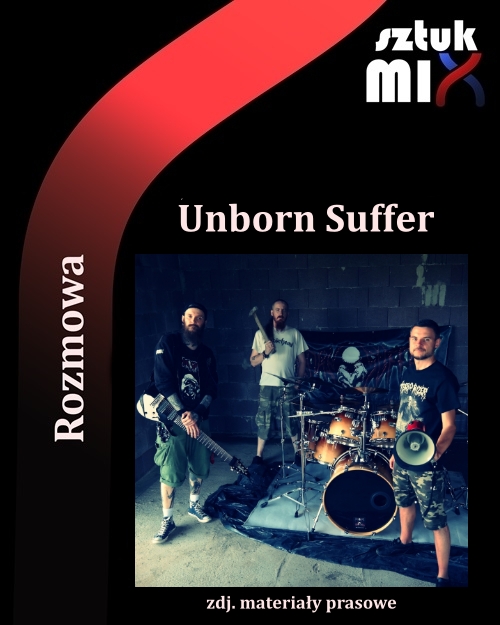 DB: Gdy zakładałem kapelę z kolegami w 2001, to najpierw usiadłem z kartką papieru i brałem kasety – bo to jeszcze były czasy kaset – patrzyłem na teksty ulubionych kapel i szukałem fajnych zwrotów. Pojawiło się tam ich kilka, kilkanaście. A jednym z nich był właśnie Unborn Suffer wzięty z zespołu Napalm Death, z albumu „Fear, Emptiness, Despair”, z utworu „Twist the Knife”. I tam padało właśnie „unborn suffer the norm” i mówię „kurczę, fajne to brzmi”. No i wpisałem, to był jeden z kilkunastu wyborów, nie tylko z tego albumu, tylko z całej mojej kolekcji kaset, które przeglądałem. Zaniosłem tę kartkę na próbę, zapodałem jakieś propozycje pomysłów i pierwszy basista, Wojciech Dąbrowski, zobaczył to i powiedział „wiesz co, a daj mi szansę, ja coś zrobię”. I namalował naprawdę mega kozackie logo, nie to obecne, ale to pierwsze logo z takimi charakterystycznymi hakami i zadziorami, nożami z lewej i z prawej strony. W momencie, gdy przyniósł to logo i je pokazał, to byłem święcie przekonany, że mamy nazwę, nie ma co walczyć.